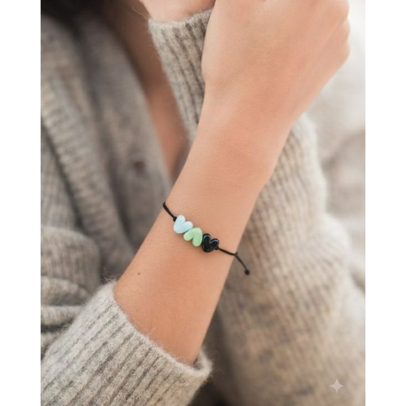 Dieses feine Freundschaftsarmband mit drei Herzen in deinen Wunschfarben eignet sich perfekt als kleines Geschenk für Zwischendurch.
